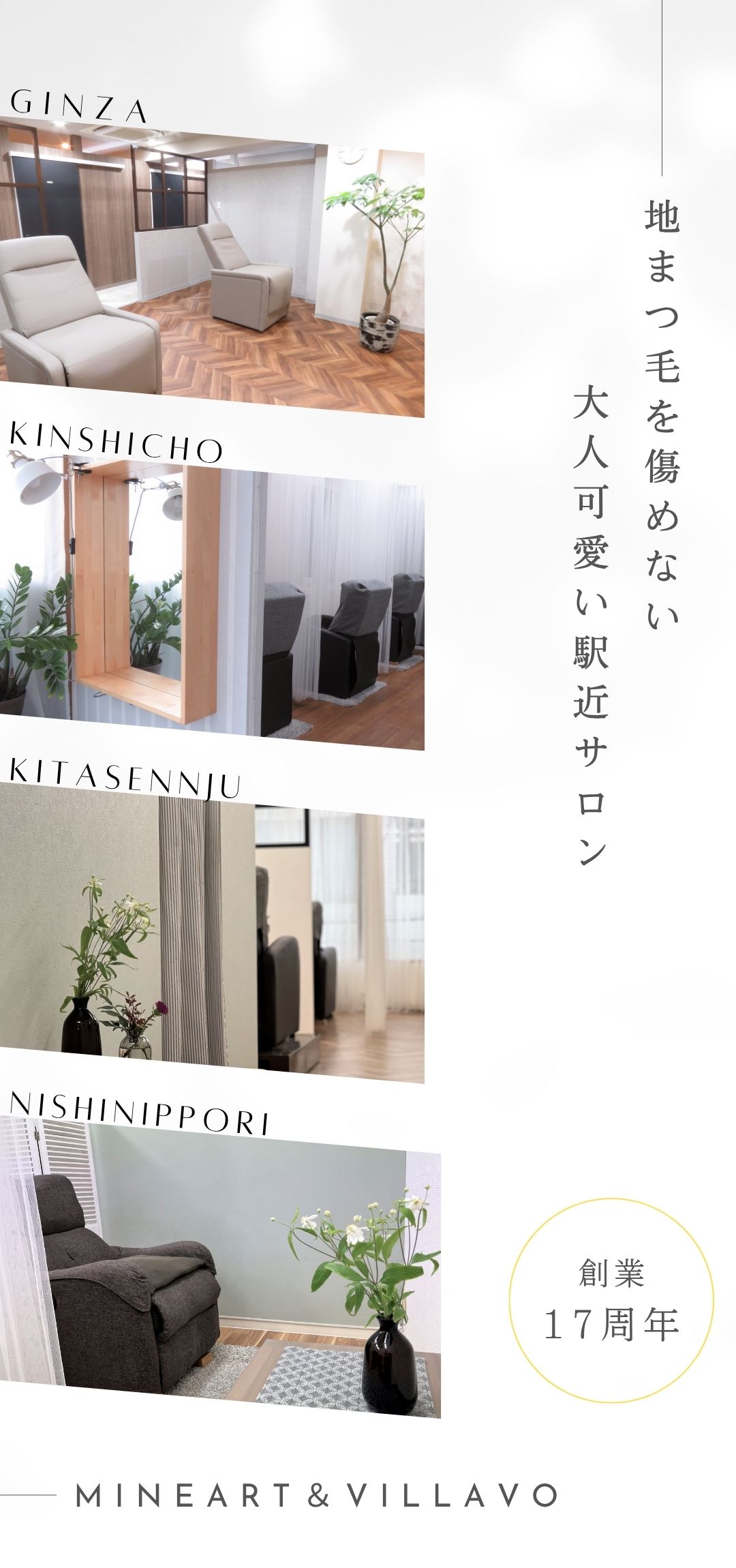 mineart&VILLAVOは仕事も頑張りながらプライベートも充実させたい、そんな女性がいきいきと働けるサロンです。気配りと思いやり、頑張りと笑いがあふれるような空間づくりを目指してます!